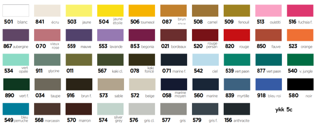 - Glissière ykk à spirale nylon 6.5 mm sur ruban polyester 32 mm