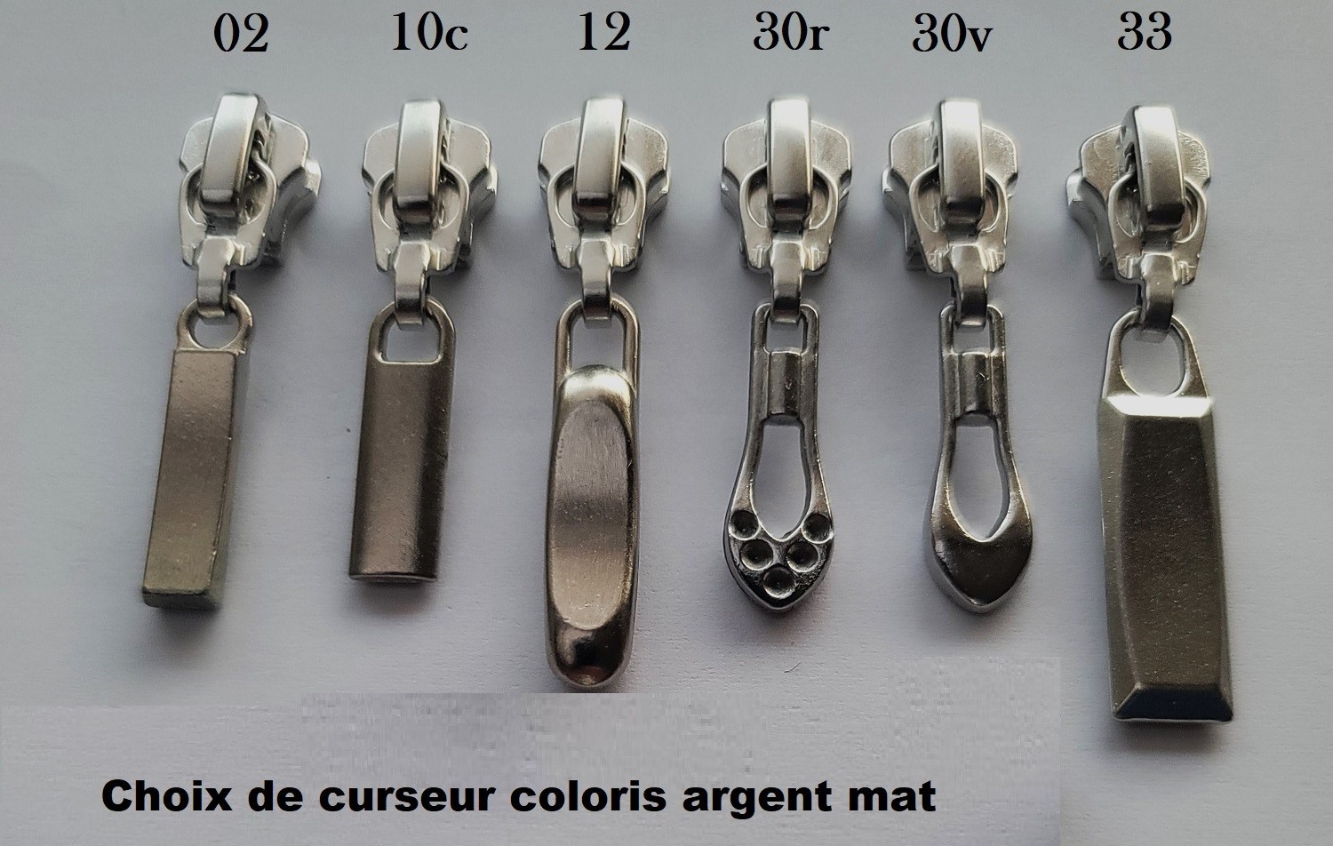 Fermeture à glissière argent satiné sur mesure