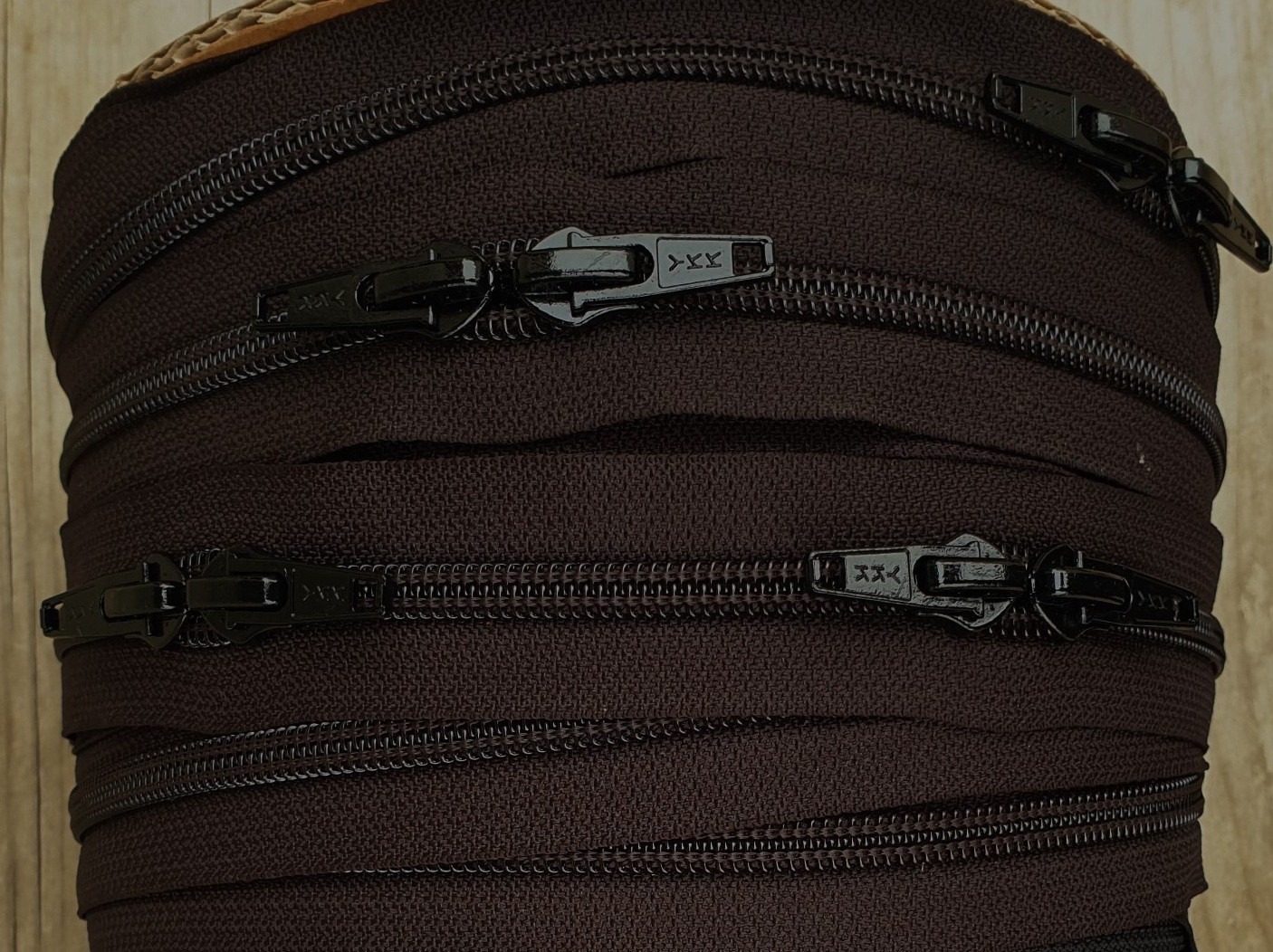 Fermeture au Mètre Numero 8 YKK Marron Noir avec Curseurs Autolocks et Arrêts