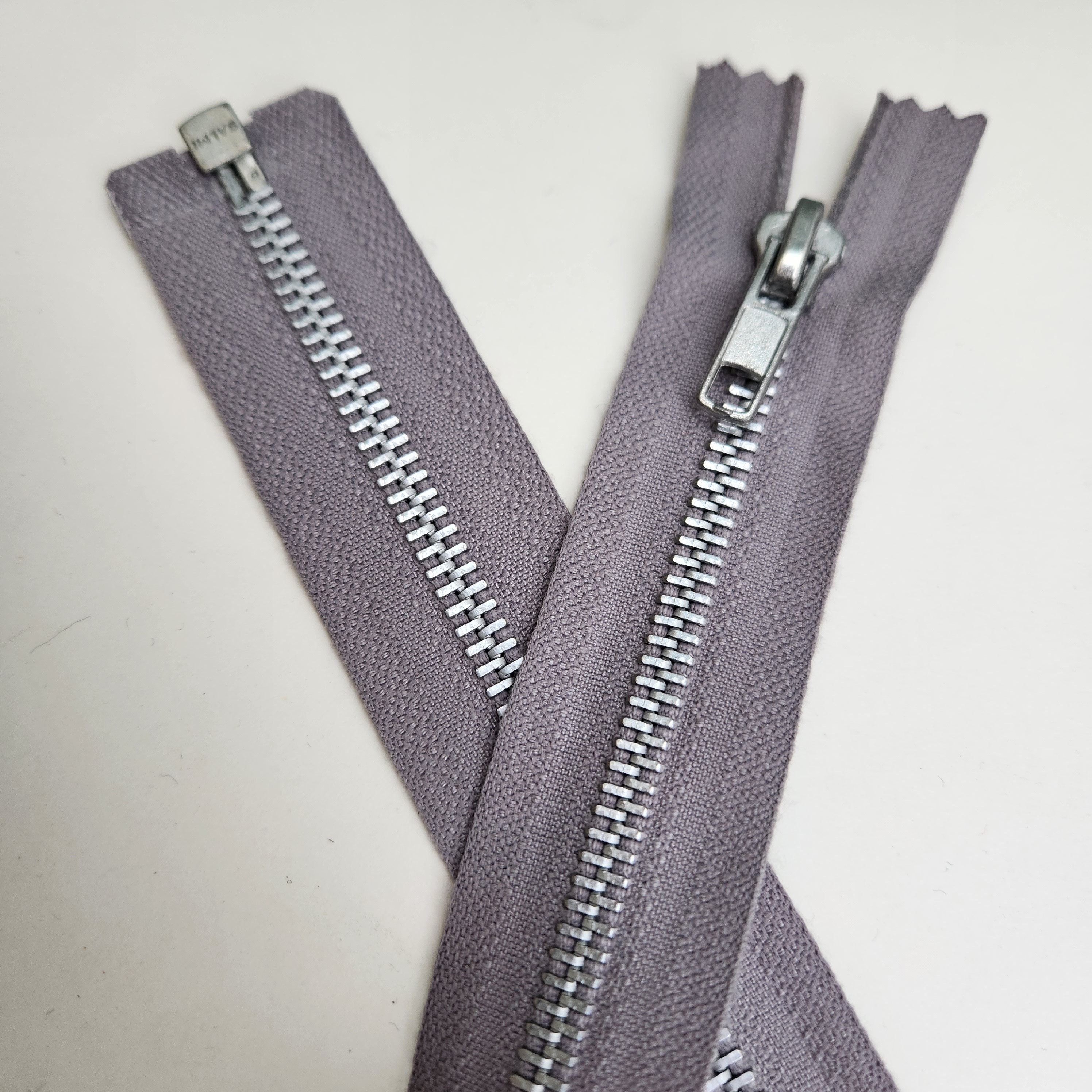 Fermeture séparable à glissière métal argenté sur ruban gris clair