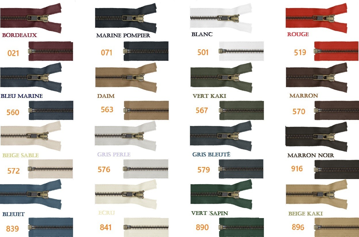 ZIP METAL 5 YKK LAITON BRONZE SUR MESURE DANS 17 COLORIS