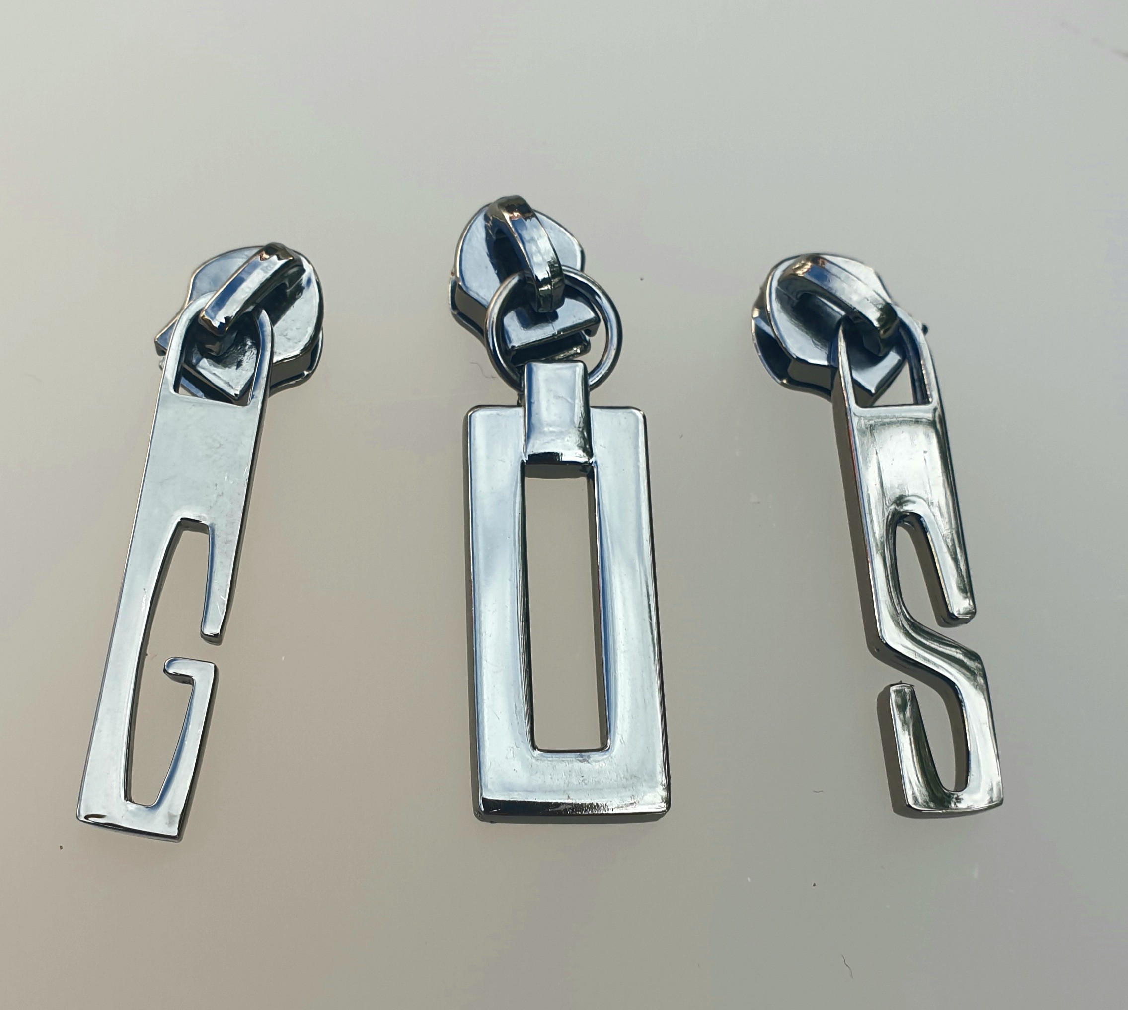 Curseur massif argenté noir brillant spécial zip spirale de 6 mm